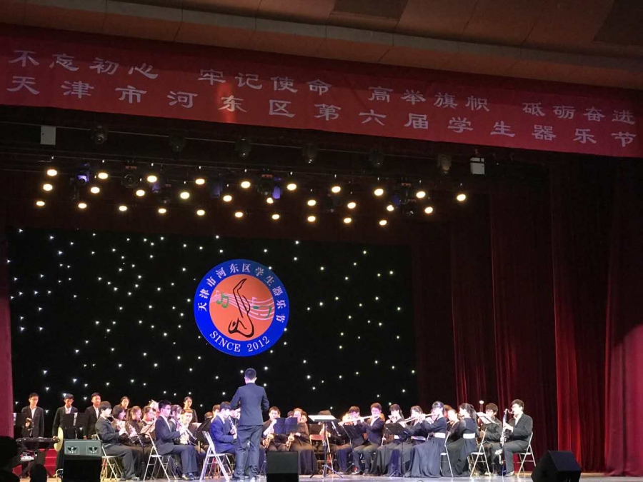 上周五(11月10日)下午,天津市第四十五中管乐团参加了在第二工人文化宫举办的河东区第六届学生器乐节。我校(两个校区)共5个节目参加了比赛,占全部参赛节目的近一半,展现了45中学强大的实力。由高中学生组成的“绿色方舟”管乐团以一首《怪物史莱克》赢得了全场热烈的掌声,这首乐曲是由好莱坞动画片怪物史莱克的背景音乐改编而成的,浪漫的,伤感的,激动的,让全场观众听见后在瞬间融合进了故事情节。由初中学生组成的“金紫藤”管乐团以奥芬巴赫《康康舞曲》展现了45中学新一代学生的风采。由我校新疆学生组成的口琴乐团演奏了王洛宾的《达坂城的姑娘》,这首脍炙人口的民歌仿佛将观众带到了美丽的达坂城,你听“达坂城的石路硬又平,西瓜呀大又甜。那里住的姑娘辫子长啊,两个眼睛真漂亮。”口琴乐团从2014年发展至今,已经成为一只建制齐全,种类丰富的学生口琴乐团。同学们用口琴这种小巧而迷人的乐器来表达他们对音乐的喜爱。